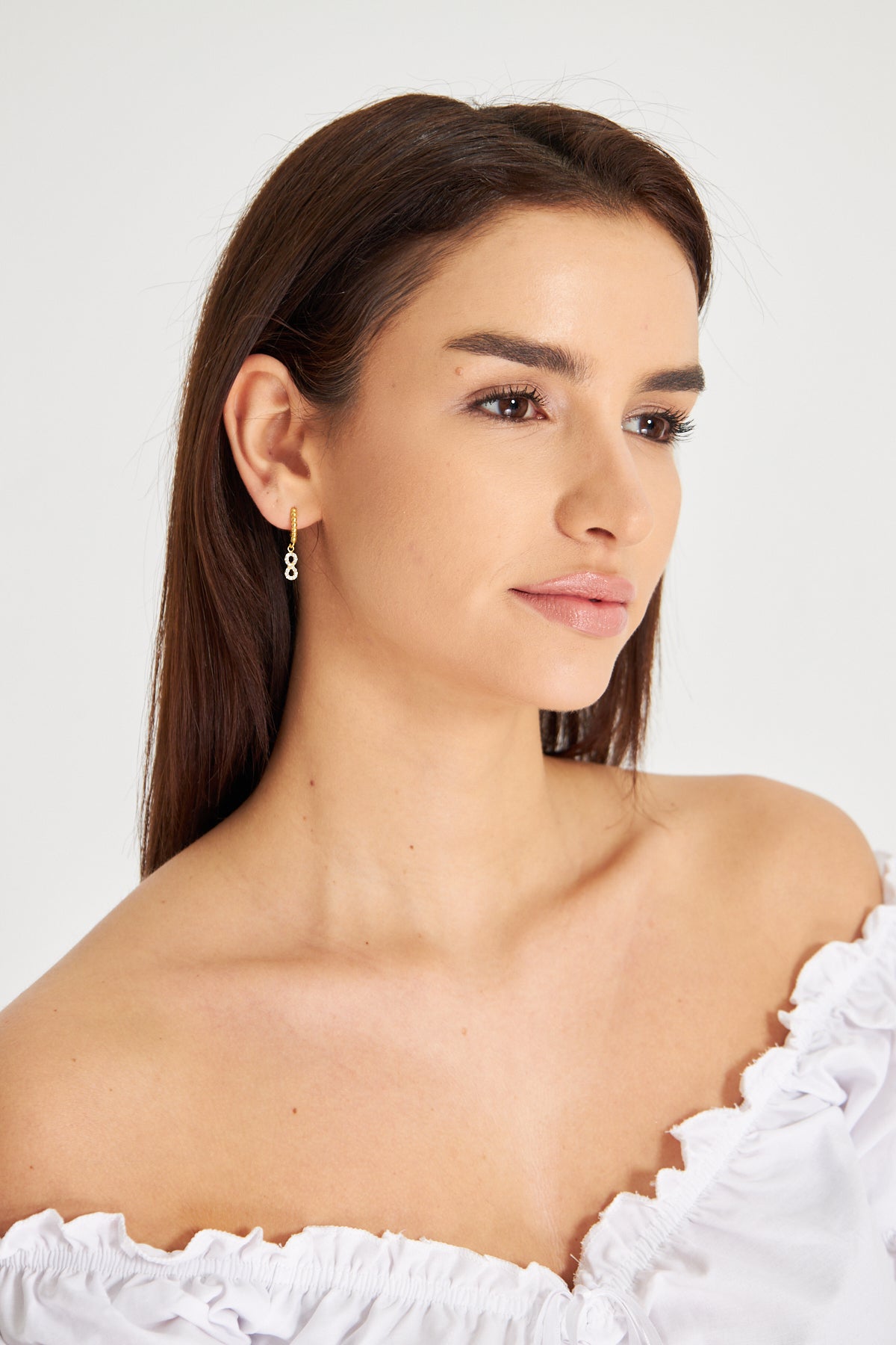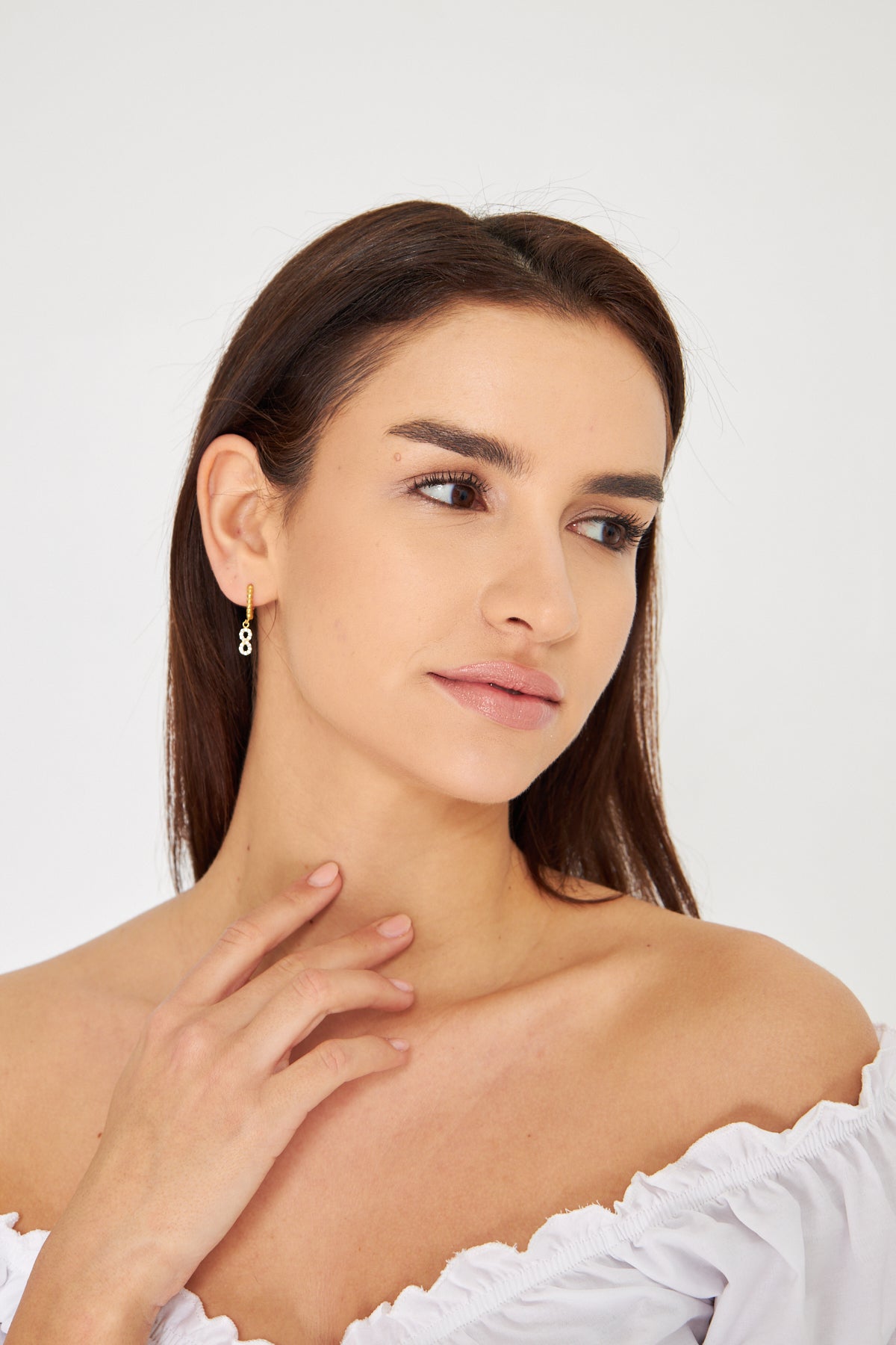 Gold Hoop Earring with Infinity Symbol Pendant and Zircon Stones