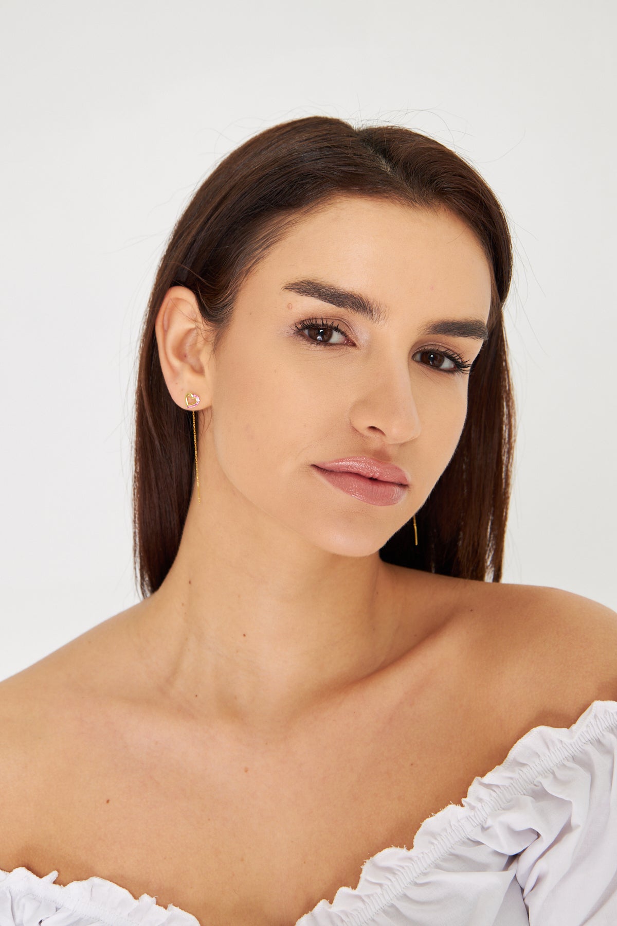 Gold Threader Heart Earring with Pink Gemstone Accents